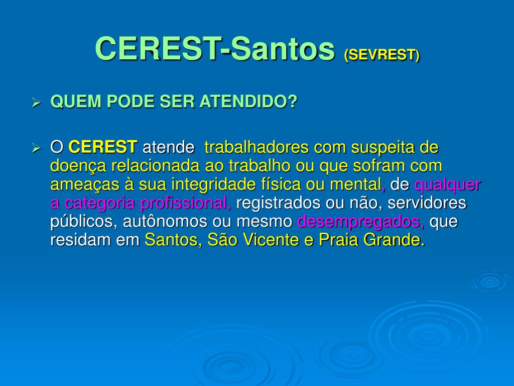A atividade é uma promoção e organização do CEREST Santos, também conhecido como SEVREST Santos (Seção de Vigilância e Referência em Saúde do Trabalhador), é uma unidade especializada em saúde do trabalhador que oferece atendimento, vigilância e promoção da saúde para trabalhadores de Santos, São Vicente e Praia Grande. Ele atende demanda espontânea, ou seja, sem necessidade de agendamento prévio, na Avenida Senador Pinheiro Machado, 565, na Vila Belmiro.