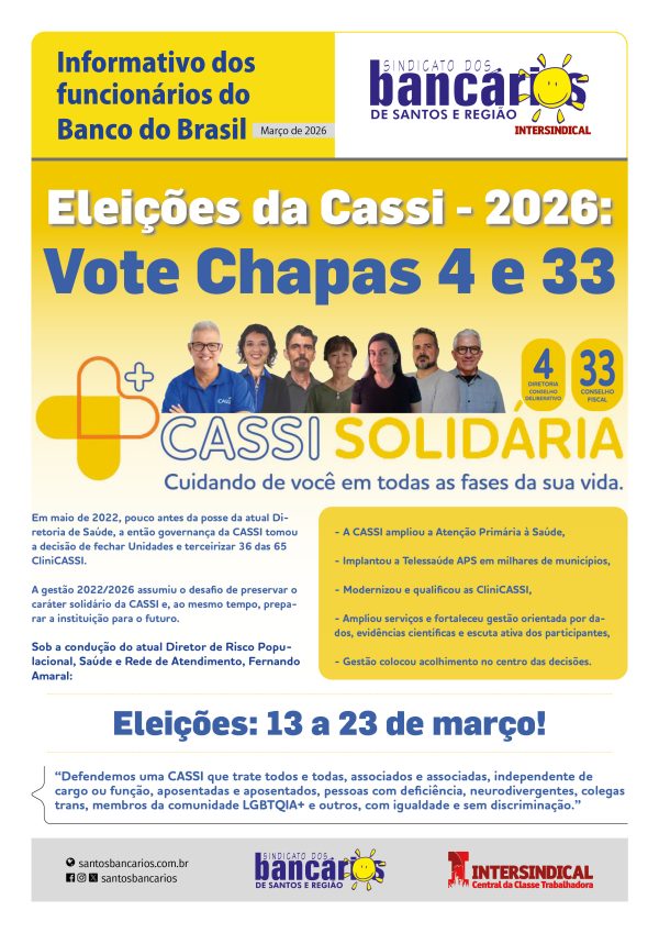 Eleições da Cassi – 2026: Vote Chapas 4 e 33