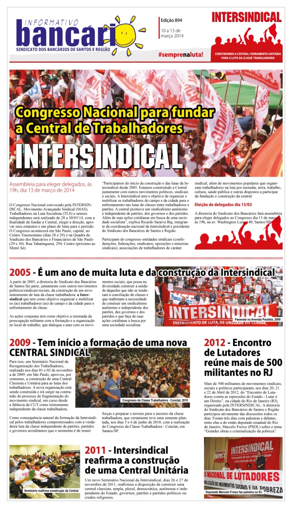 2013: Intersindical presente nas lutas e nas ruas, por um novo amanhã