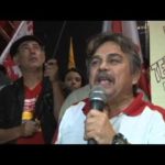 Depois das paralisações, às 12h30 de quinta-feira, realizaram ato contra a terceirização da categoria e dos trabalhadores em geral, na Pça. Mauá (em frente ao Santander), no centro de Santos/SP