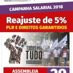 A proposta prevê, ainda, acordo com validade de dois anos, já garantida para 2019 a manutenção de todos os direitos, além da reposição total da inflação (INPC) mais 1% de aumento para salários e demais verbas.