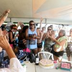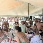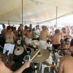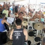 Mais de 200 pessoas, a maioria bancário, foram até a praia do Embaré, perto do Canal 4, para relaxar e curtir boa música. Em um belo dia de sol, a galera pode aproveitar toda a estrutura da barraca ao som da banda Cruz de Malte.