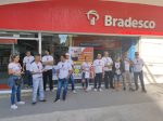 “As agências estão lotadas de clientes e usuários. Contudo, o lucro líquido de R$ 4.280 bilhões nos últimos 3 meses demonstra que o Bradesco não precisa demitir trabalhadores ou fechar agências e pode sim contratar mais e oferecer um atendimento melhor colaborando com a diminuição do desemprego!” Afirma Ednilson Santos, diretor do Sindicato e funcionário do Bradesco.