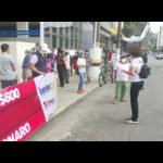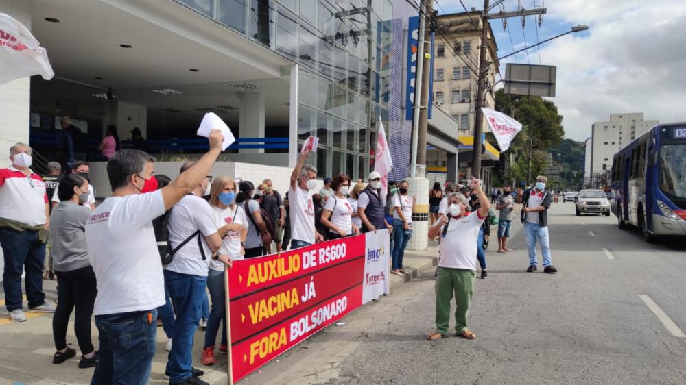 Bancários protestam na Agência Santos da Caixa nesta sexta, 18/6