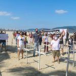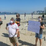 Intersindical protestou em Santos para lembrar 100 mil mortos no Brasil