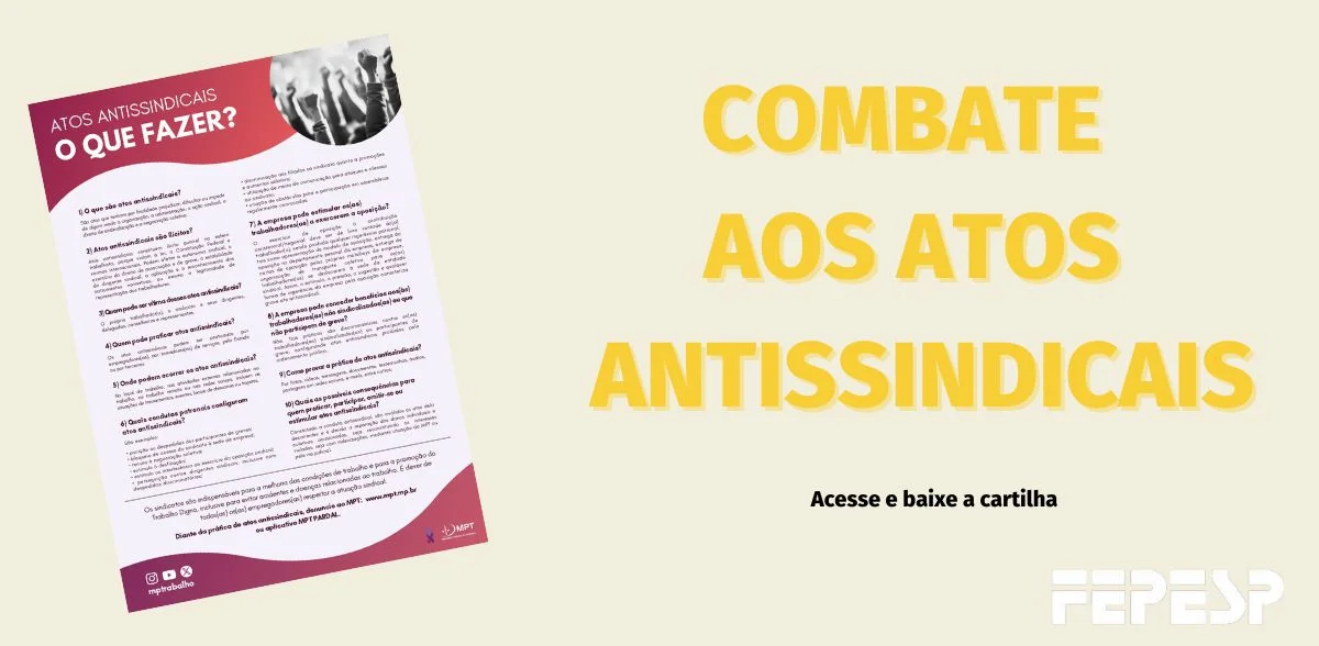 A cartilha “Atos Antissindicais. O que fazer?”, publicada pelo Ministério Público do Trabalho (MPT) é uma excelente ferramenta de prevenção e combate às ações de empregadores e tomadores de serviços, sejam da iniciativa privada, ou de empresas públicas que visem dificultar, ou impedir a organização dos trabalhadores, o direito à sindicalização e a negociação coletiva.