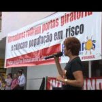 “A Manifestação teve como objetivo denunciar e mobilizar a população contra os malefícios da Lei, que só beneficia banqueiros e ladrões”, diz Eneida Koury, Secretária Geral do Sindicato dos Bancários de Santos e Região.
