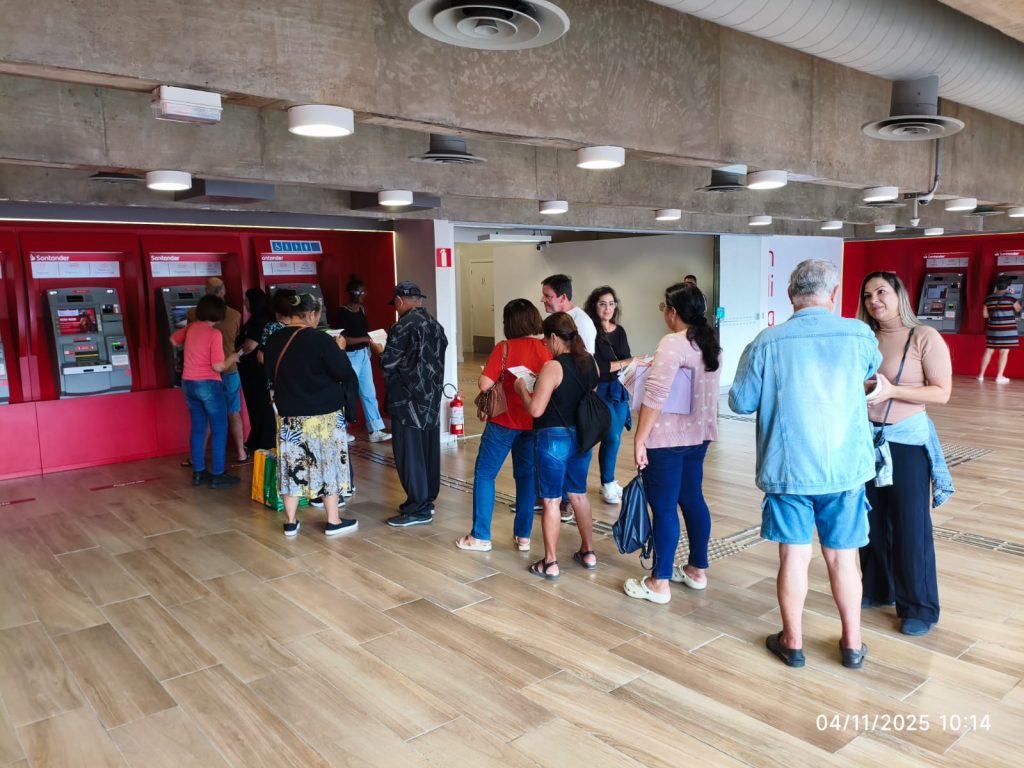 Hoje (4/11), terça-feira, é Dia Nacional dos Funcionários do Banco Santander, a diretoria do Sindicato dos Bancários de Santos e Região faz manifestação, das 9h ás 12h, na agência do Centro de São Vicente/SP, contra as demissões, fechamento de agência, terceirização, pressão por metas, adoecimento a sobrecarga de funções por falta de funcionários. Foram entregues cartas abertas aos trabalhadores e clientes para explicar o dia a dia no ambiente de trabalho!