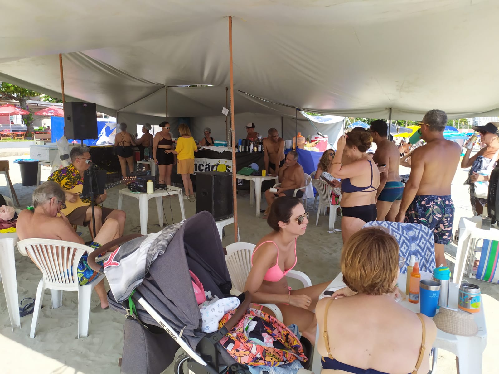 A barraca fica montada em frente à igreja do Embaré, próxima do Canal 4, em Santos. Reservas do espaço para eventos e outras informações pelo celular/whatsapp: (13) 99179-0232, com o responsável Castelo.