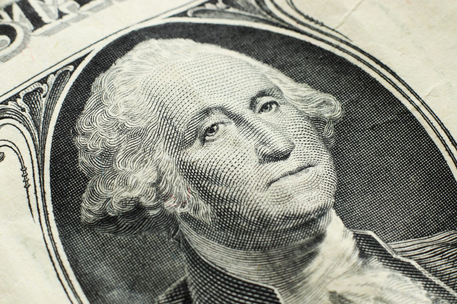 A high angle closeup shot of a dollar bill