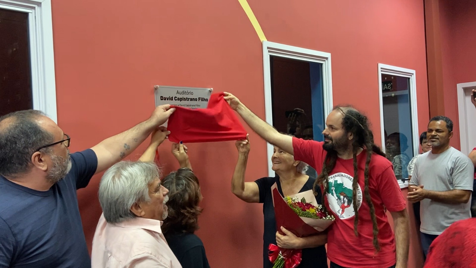 Em dia de homenagem: ”25 anos sem David Capistrano”, a diretoria do Sindicato dos Bancários de Santos e Região e familiares do ex-prefeito realizaram a cerimônia de descerramento da placa que oficializa o nome do auditório do Sindicato de “David Capistrano Filho”.