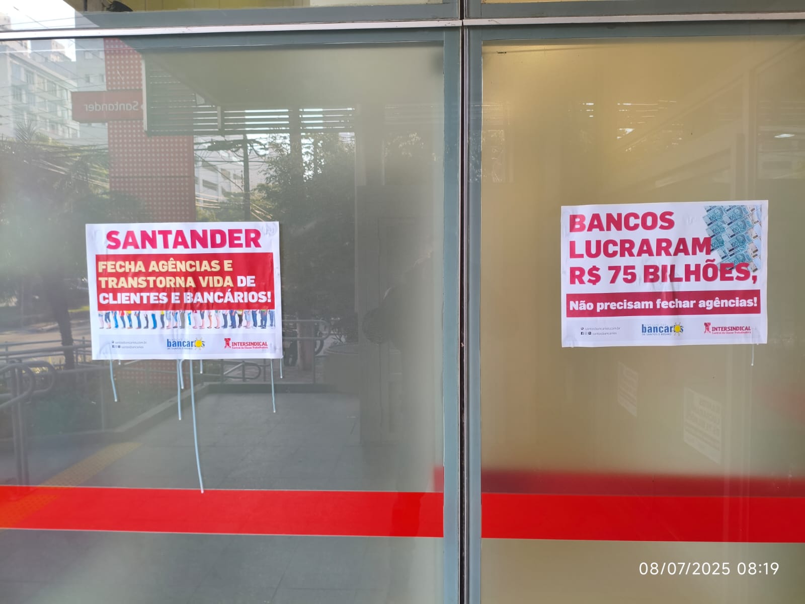 Somente na Baixada Santista foram encerradas 10 unidades do Santander, sem falar de outras dos bancos Itaú e Bradesco. Os três bancos tiveram lucro de quase R$ 75 bilhões em 2024, não precisam fechar agências e muito menos demitir trabalhadores!