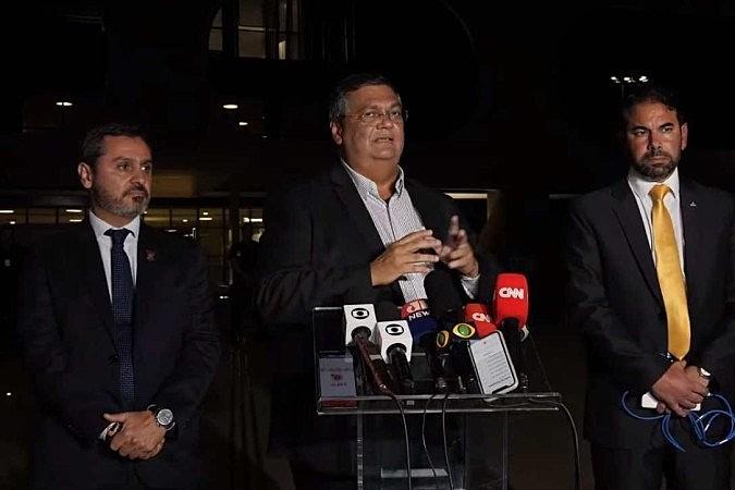 Flávio Dino elogiou o Governo do Distrito Federal pelas operações conjuntas com a equipe de segurança de Lula. Disse que conversou cinco vezes com Ibaneis entre o início dos atos terroristas e momentos antes da entrevista.
