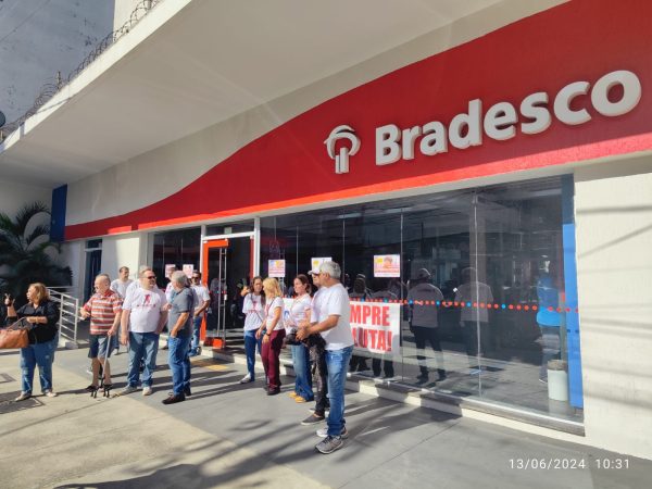 Bancários protestam no Bradesco Gonzaga nesta quinta (02)