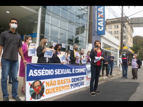 Ato na Caixa em Santos contra assédio sexual de Pedro Guimarães