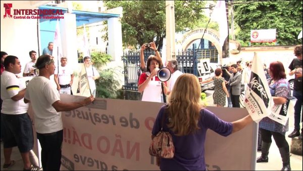 Fala da Intersindical durante ato da greve dos professores em São Vicente