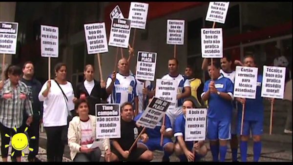 Bancários fazem Gol de placa contra o Assédio e demissões no Itaú