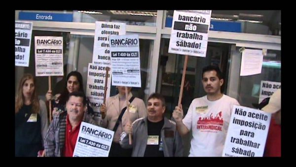 Bancário não Trabalha Sábado – Categoria faz manifestação no Centro de Santos